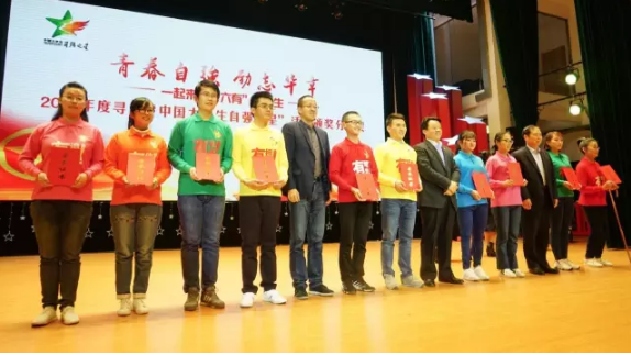 我院硕博连读研究生谷乐作为“2016中国大学生自强之星标兵”上台领奖。获得“2016中国大学生自强之星标兵”的还有:投身公益助农的裴锦泽,立志通过新材料改变世界的赵云龙,用笔尖探险的白玛德吉,为智能电单车提供中国动力的杜磊,给青春烙上迷彩底色的蒋光明,用奉献谱写英雄赞歌的肖玉玲,心怀感恩点燃创业梦的张文梅,不为环境所累逆风生长的孟祥波,为纺织行业贡献力量的袁小婷。团中央书记处书记傅振邦、新东方教育科技集团董事长俞敏洪、湖北省政府副秘书长聂昌斌为他们颁奖。