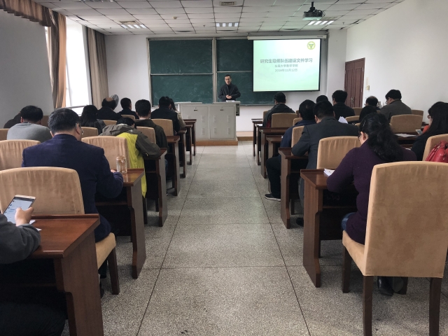 李玉祥副院长就《中共中央国务院关于全面深化新时代教师队伍建设改革的意见》、《教育部关于全面落实研究生导师立德树人责任的意见》、《江苏省关于加强研究生导师队伍建设的意见》、《江苏省关于印发研究生导师职业道德规范“十不准”的通知》、《东南大学研究生指导教师责任制实施办法(试行)》等文件及我院研究生招生和培养等相关管理办法向参会导师做了详细解读。
