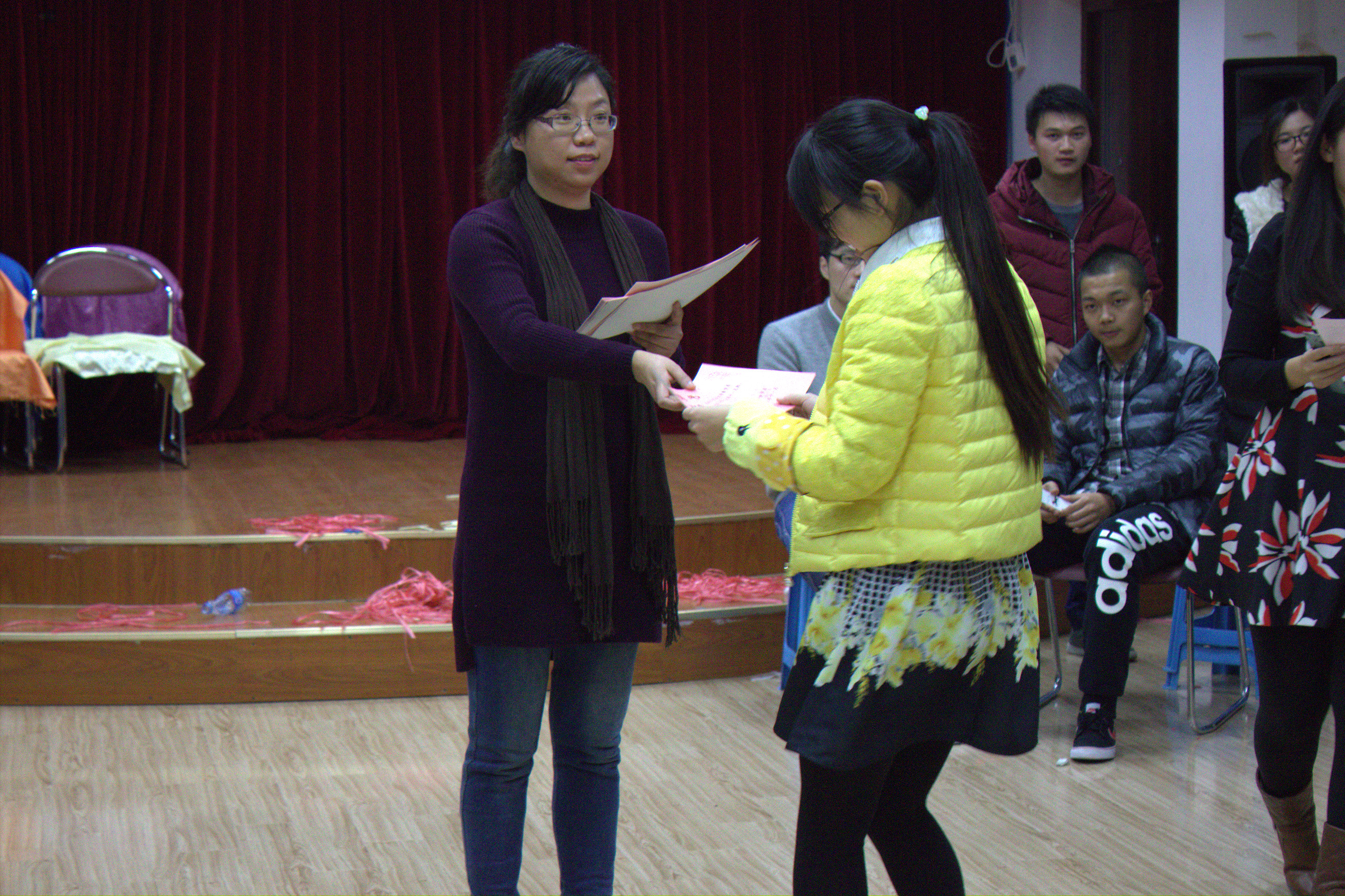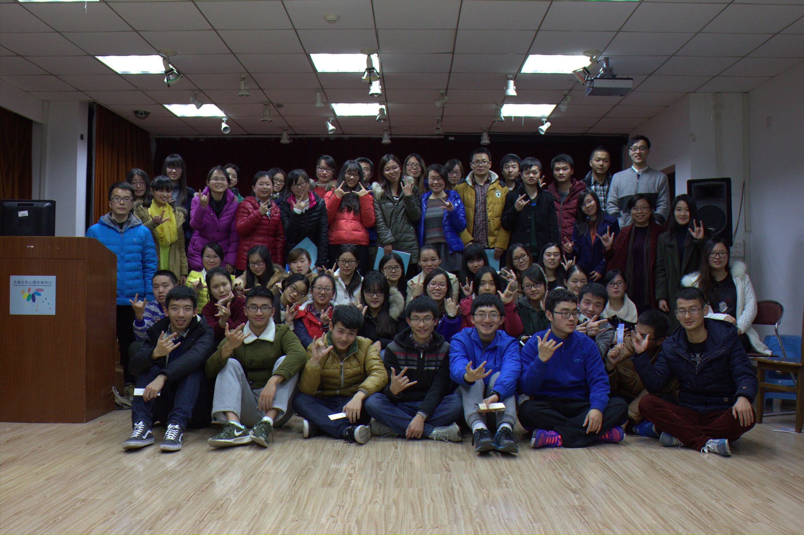 2015128日晚1830分,七彩桥共同成长计划的启动仪式在大学生心理健康教育中心442室隆重举行,整个活动持续2个半小时。数学系党委副书记曹海燕老师,团委副书记、大一大二辅导员陆妍蓉老师和研究生同学们以及大一学生们一起参加了此次活动。