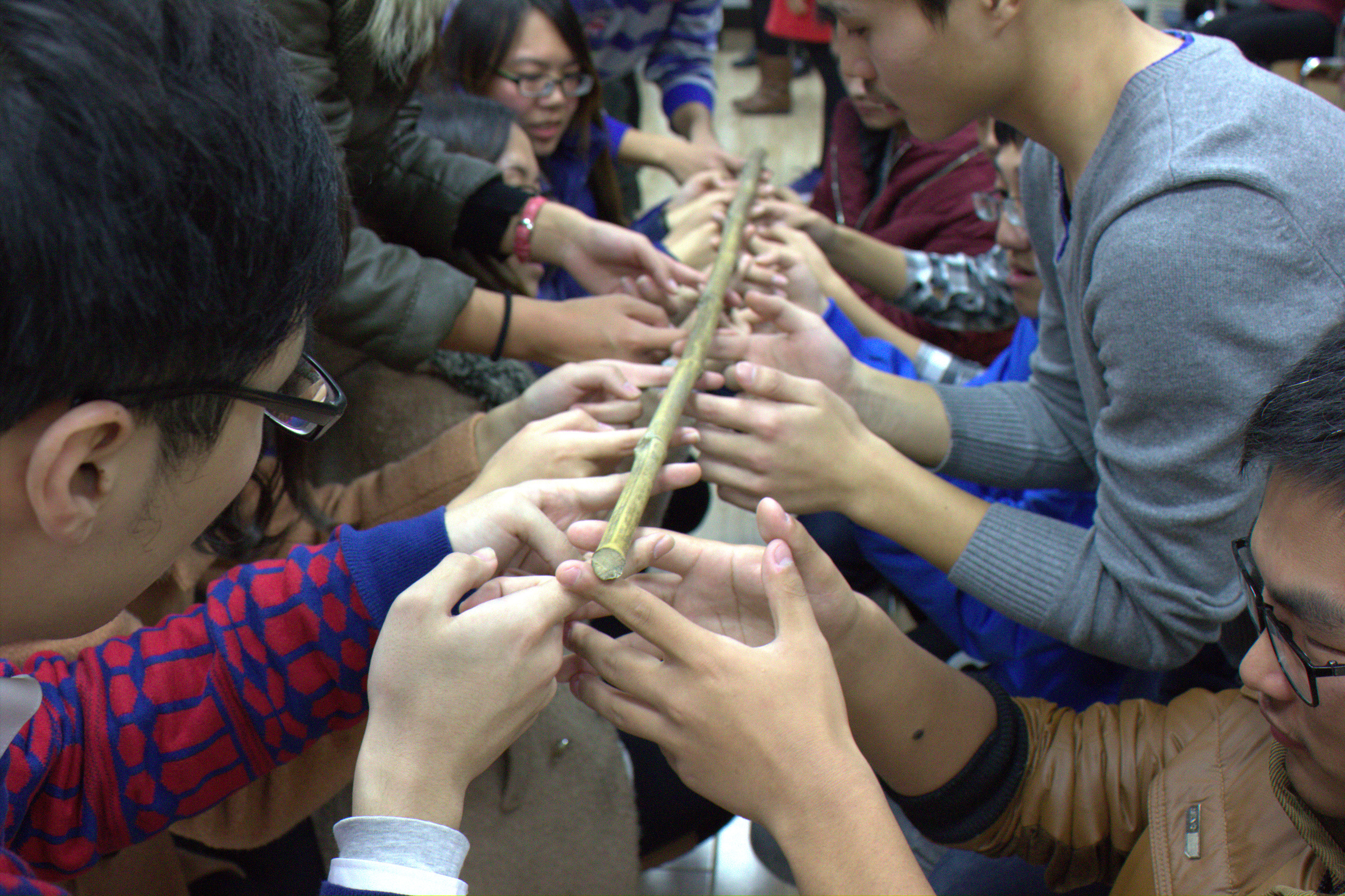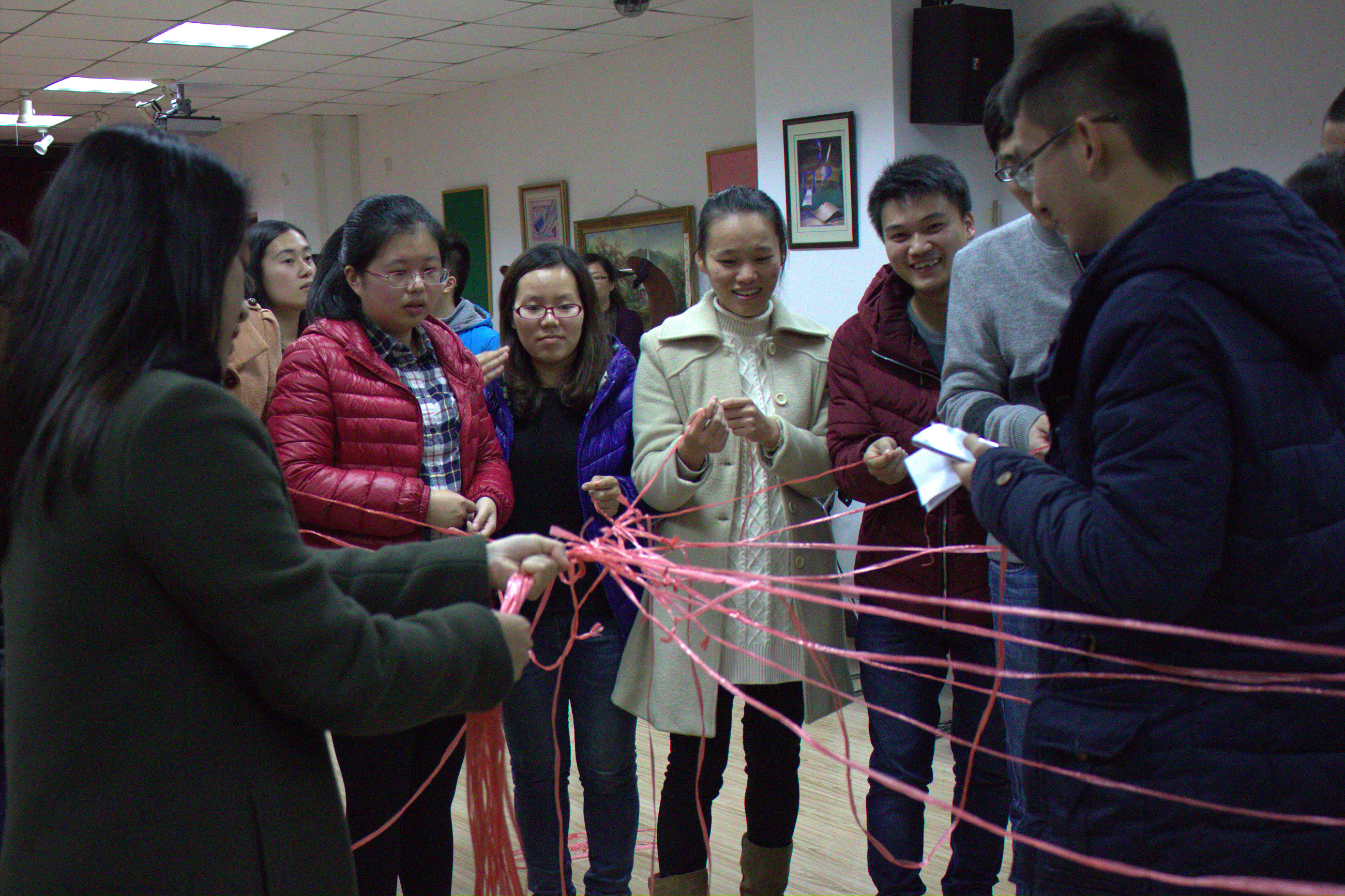 启动仪式分成两个部分,首先是陆老师对同学们进行团体辅导,在这个辅导过程中,通过一系列简单但新鲜有趣的游戏让大一同学和研究生同学间有了消除尴尬、相互了解的机会,每一个活动后经过陆老师的循循善诱,大家都积极热烈地交流自己的活动感想和心情,每一点的分享、每一点的感悟都让同学们间彼此敞开、彼此信任,从而结成了深厚的友谊,也更加清晰地明白了七彩桥共同成长的深刻含义。团辅活动最后的红绳配对环节将此次的启动仪式推向了高潮,大一新生们仔细挑选、慎重牵起的红绳让自己和研究生学长学姐间结成了一个个的七彩桥小队,每一条红绳的两端联结着两颗跳动的心,
